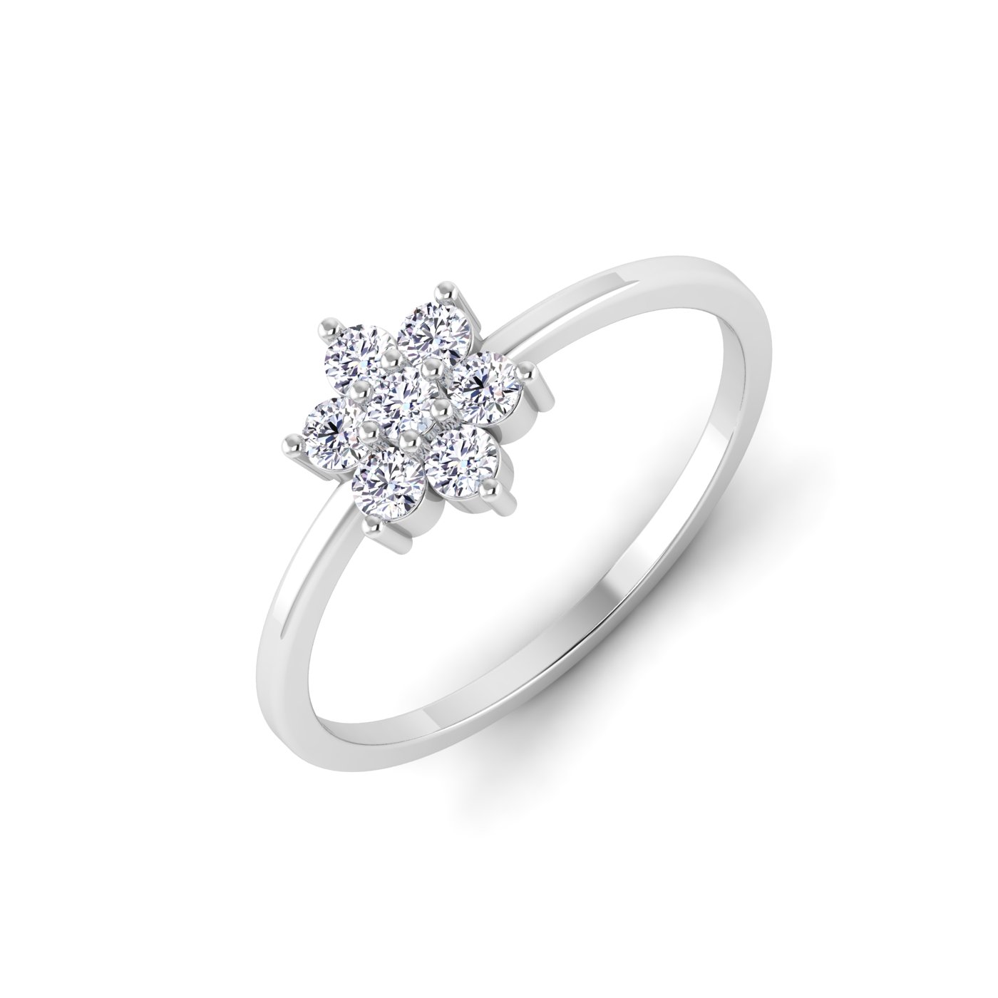 Seven radiant diamonds set in a floral-inspired design, available in 10, 14, or 18 kt gold for a graceful, dazzling effect.